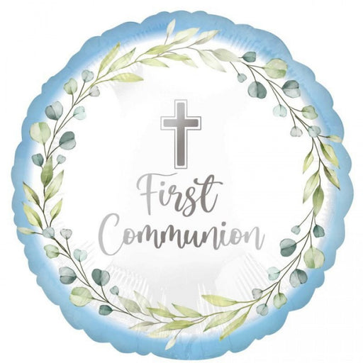 Balloon Foil Round Shape - Holy Communion - Light Blue - Olive Leaves