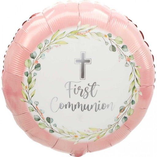 Balloon Foil Round Shape - Holy Communion - Pink - Olive Leaves