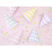 Party hats Yummy made of paper, mix of colours, height approx. 16 cm, diameter approx. 10 cm.