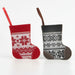 Mini Felt Stockings with Christmas Pattern. Available in red or brown.