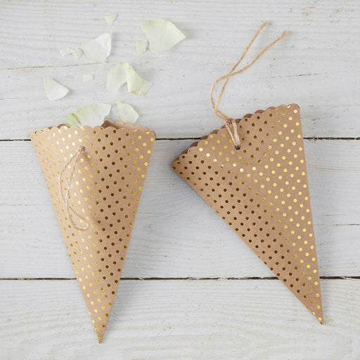 €6.45| /Brown Kraft Confetti Cone beautifully foiled with gold polka dots. Use these confetti cones to hold your special confetti on the big day! These con...