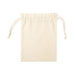 Nature line bag in cotton 105g/m2. Size 15x21 cm, with stitched finishing and self closing strings in cotton.