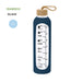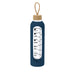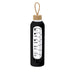 1L glass bottle designed to encourage proper hydration. Covered with a silicone sleeve that protects and provides a comfortable and secure grip. Includes capacity indicator in liters and ounces, accompanied by motivational phrases that inspire maintaining proper daily hydration. The cap, made from bamboo, includes a convenient cord for easy transport. BPA-free.