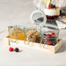 Set of 3 glass jars with a 230ml capacity. Versatile accessories for organizing your home, kitchen, pantry… according to your tastes and needs. Made of glass with stainless steel snap closures, a combination of materials that offers great strength and durability. Presented on a wooden tray and in an individual eco-friendly box.