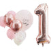 Fill your camera with beautiful photos of your little one's very first birthday! We have created the perfect cluster of balloons to create a magical display for the special day! This balloon pack contains beautiful pink shades and rose gold colours in a variety of sizes. Let's not forget the best part - a huge 34" no. 1 rose gold foil balloon, to make the day really sparkle!