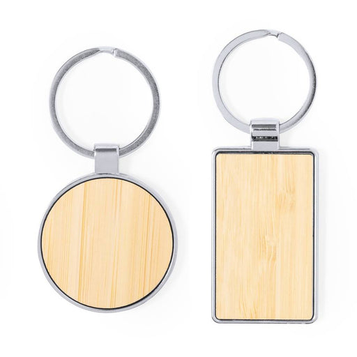 €0.00| /Elegant keyring made of bamboo and chrome-plated metal. It features a large imprint area and is available in rectangular or round shapes. Specifica...