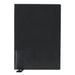 Soft cover notepad made of smooth PU leather in an elegant black colour, combining smooth and bevelled textures. Including fabric bookmark and a special metal plate for laser engraving. Inside with 100 sheets, in cream colour, with single-striped layout and black edges.