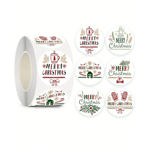 €0.03| /Round Christmas Sticker - Mixed Design - Price per label.