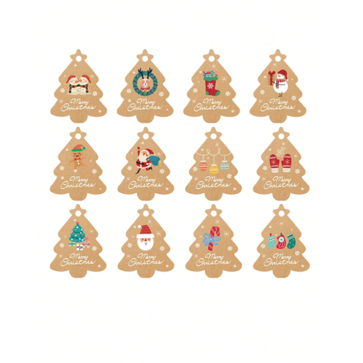 €5.25| /Christmas Gift Tag - Christmas Tree Cutout - 5x4.5cm - Assorted designs. Pack has 48pcs.