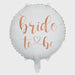 Foil balloon Bride to be in white colour with Bride to be inscription in rosegold colour, size before inflation approx. 45 cm (18"), size after inflation approx. 35 cm (14"). Infalte with air and helium. Set contains a straw.