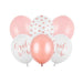 Strong balloons Bride to be, set contains 6 balloons (3 white with print, 1 Mettalic Rose Gold colour, 1 Pastel Pale Pink colour), diameter approx 30 cm.