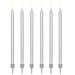 Birthday candles plain, metallic silver, size approx. 12.5 cm, set contains 12 candles and 12 holders.