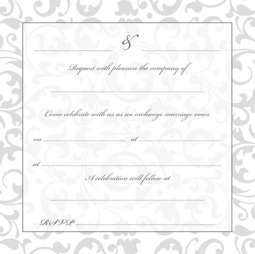 Invitation Fill-in - Wedding - Floral Damask Silver
