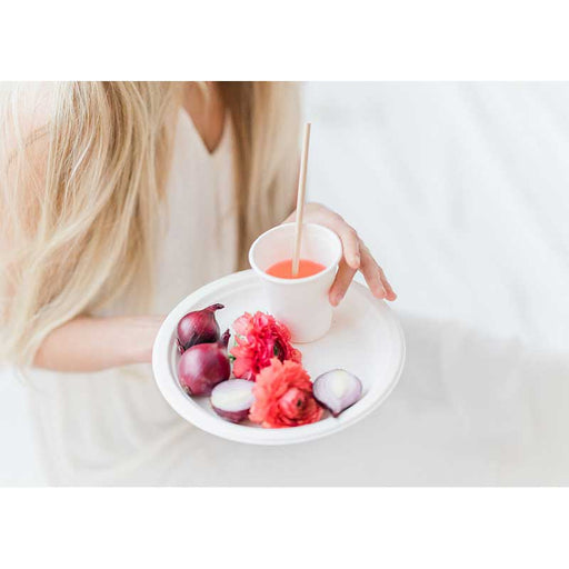€2.45| /Sugar cane plates in white colour, diameter approx. 22.5 cm.(1 pkt / 6 pc.)
